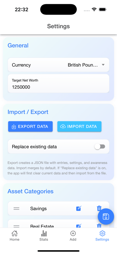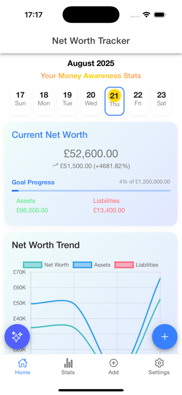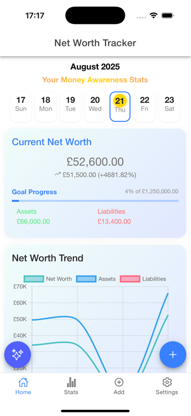 The app provides features like net worth tracking, progress visualization, and financial goal setting.